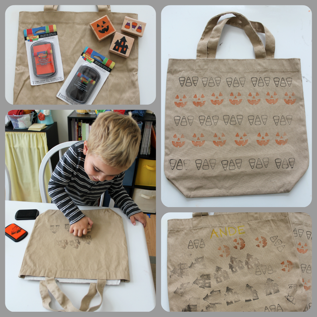 We bought canvas totes, Scribbles fabric ink pads, and Halloween stamps at Joann's.